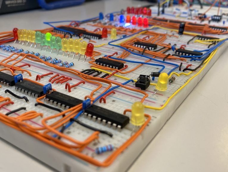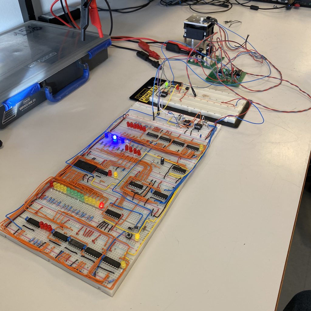 In the end of my first semester at DTU electro we had a three week course where we were tasked with building the controls for a component test oven using only combinatorial logic. I created the combinatorial circuit and my two team mates did the analogue oven control.